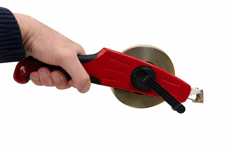* Houd de landmeter stevig vast en rol het lint langzaam terug