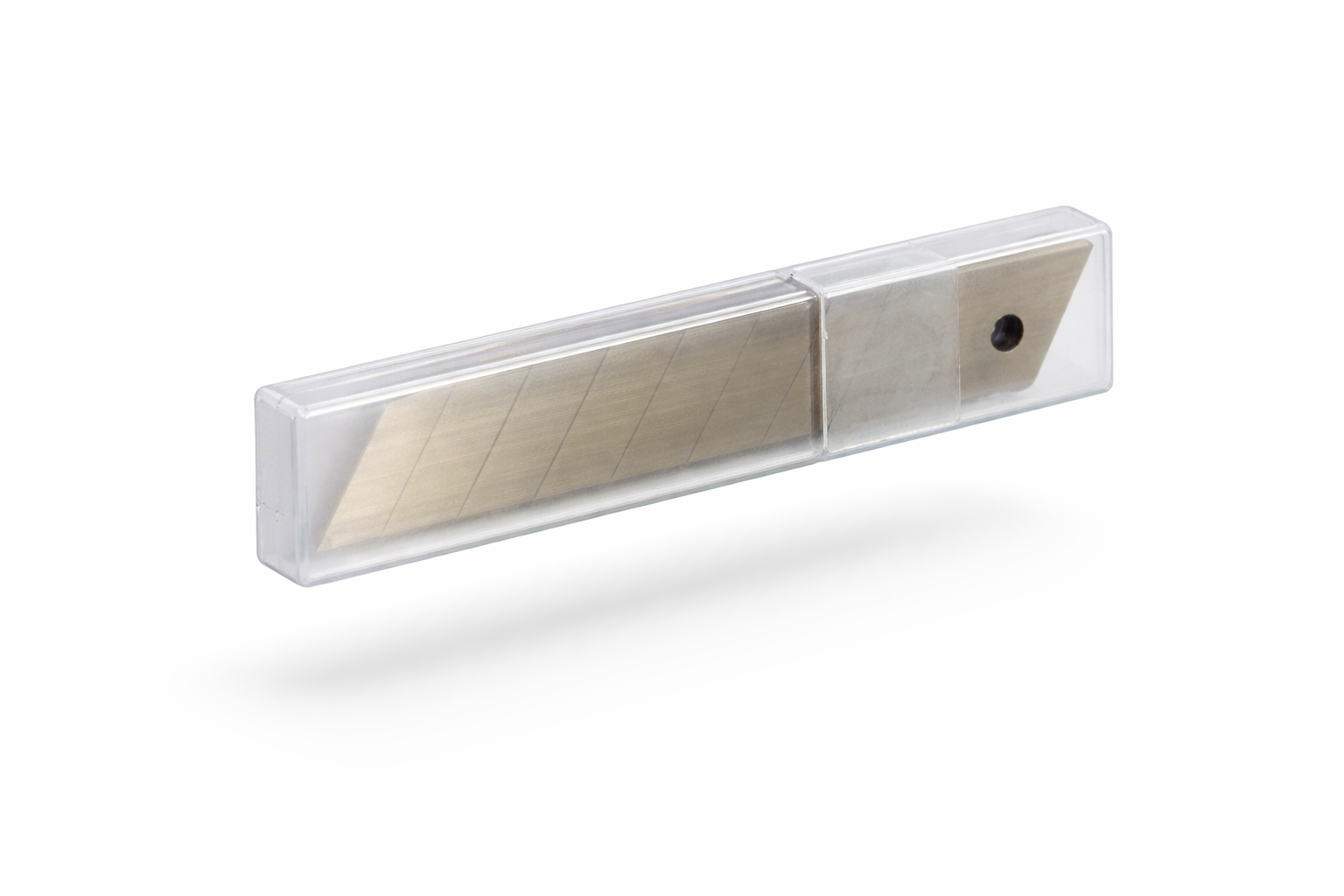 Stuksverpakking: per 10 vervangmessen in PP tube (15x3x1 cm. / 11 gr.)