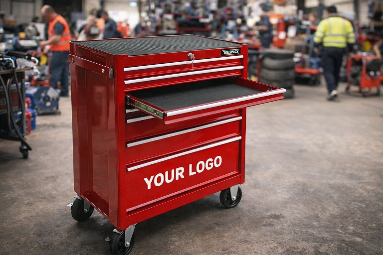 A TVI tool cabinet with your logo combines practical use with strong brand visibility. Robust, professional, and perfect for both promotional purposes and daily use.