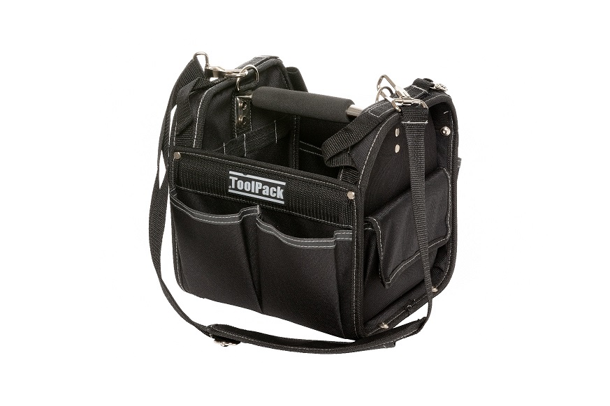 ToolPack tool bags with metal carrying bar are designed for intensive use and optimal organization. The robust handle, water-resistant materials, and functional storage compartments ensure durable performance and direct access to tools.
